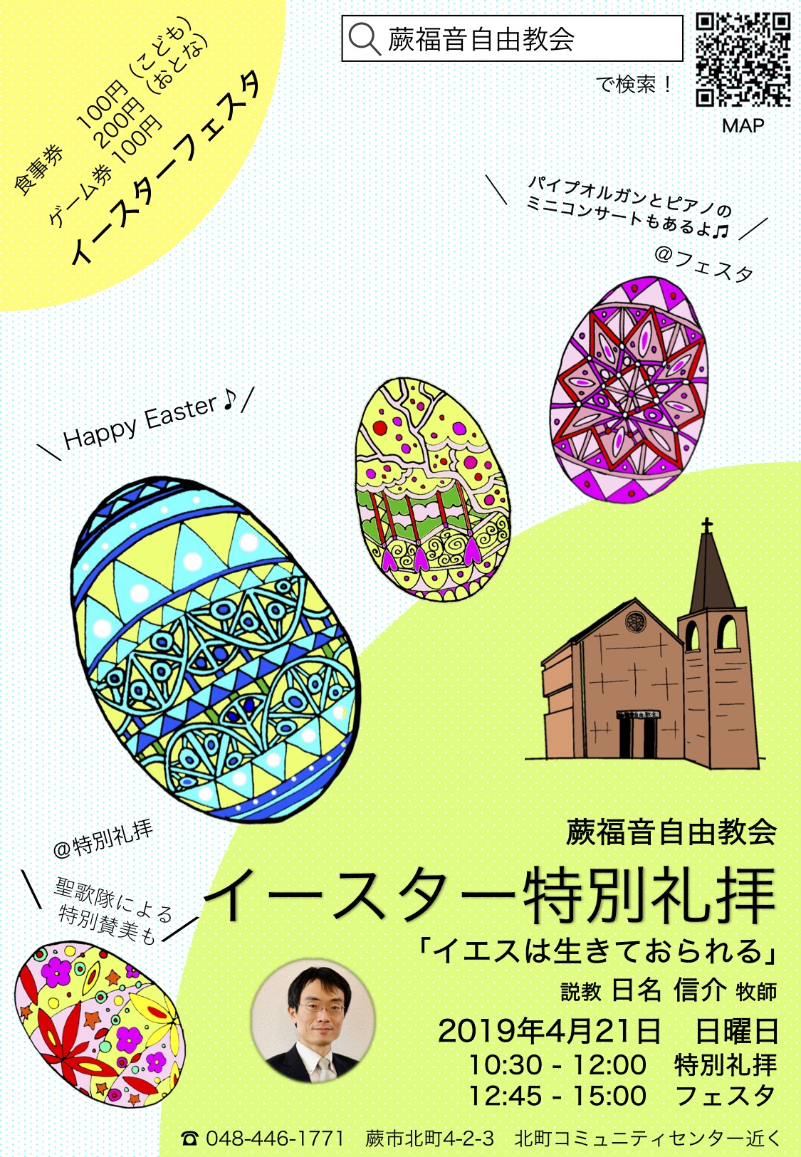 4月21日10時30分より、イースター特別礼拝、12時45分から15時までイースターフェスタを開催します。