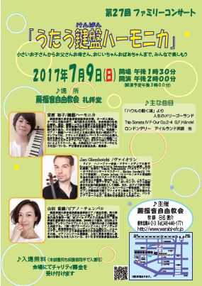 出演 宮原裕子(鍵盤ハーモニカ)、Jan Glembotzki(ヴァイオリン)、山田香織(ピアノ・チェンバロ)